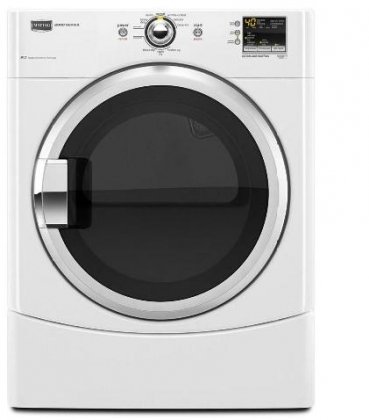 | 8 of 8 people found the following review helpful: By This review is from: Maytag Performance Series MEDE200XW 27 6.7 cu. Ft. Front-Load Electric Dryer - White Bought this front-loading dryer as a pair with the Maytag MHWE200XW washer for our newly constructed basement laundry room (replacing 17-year-old Maytags that were working fine and readily found a new home). In addition to updating our old units to modern, energy-efficient front-loaders, we selected this pair for (a) their stack-ability, a must to fit our small room, (b) their overall stacked height of 72" - the only pair we found that would meet our height clearances (most others were 78-79"), and (c) the side-venting option, another must due to our no-rear-clearance situation. This pair also turned out to be the cheapest in this category, and the washer had several good reviews, despite being a new model, and despite reading about Maytag quality taking a downturn a few years back. (The brand is now owned by Whirlpool and quality & reliability seem to be back up to par with Whirlpool appliances). Redirecting the exhaust to the left side vent turned out to... Read more 1 of 1 people found the following review helpful: This review is from: Maytag Performance Series MEDE200XW 27 6.7 cu. Ft. Front-Load Electric Dryer - White This is my second Maytag dryer and I loved them both. Unfortunately after an earlier power brown out my old Maytag no longer worked. My first Maytag machine worked for over five years with nary a problem until the brown out. I purchased the Maytag 2000 series dryer after this incident. What I do like about this new machine is that it has a larger drum allowing for the clothes to tumble freely, thereby allowing warm air to circulate around the clothes meaning a shorter drying time. This saves money. I also like the automatic power shut-off when you remove the clothes from the dryer thereby saving energy.About the only thing I do not like is the door does not latch easily. Even the dryer installer had difficulties closing the door when he went to check out the machine. This is a minor annoyance. By-the-way I rarely use the dryer to save money. What I do use the dryer for is drying sheets, towels and socks. Recommend. |